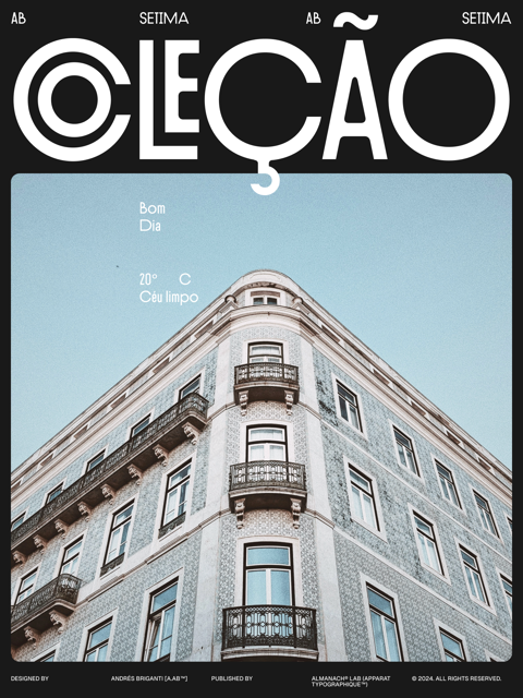 AB Setima is suited for environments balancing refinement and approachability: restaurant identities, hotel graphics, and event communications. It delivers distinction without excess.